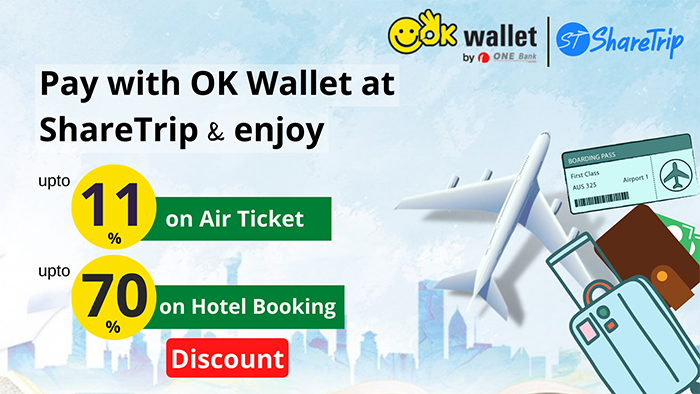 - This discount will only be applicable for online payment using OK Wallet at ShareTrip.